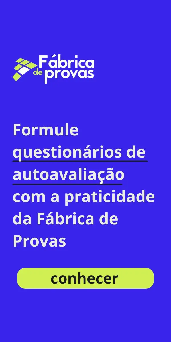 E sabia que você pode contar com o apoio da Fábrica de Provas nesse processo? Com nossas ferramentas de gestão e criação de avaliações, você pode criar questionários de autoavaliação e outros testes de forma simples e prática!